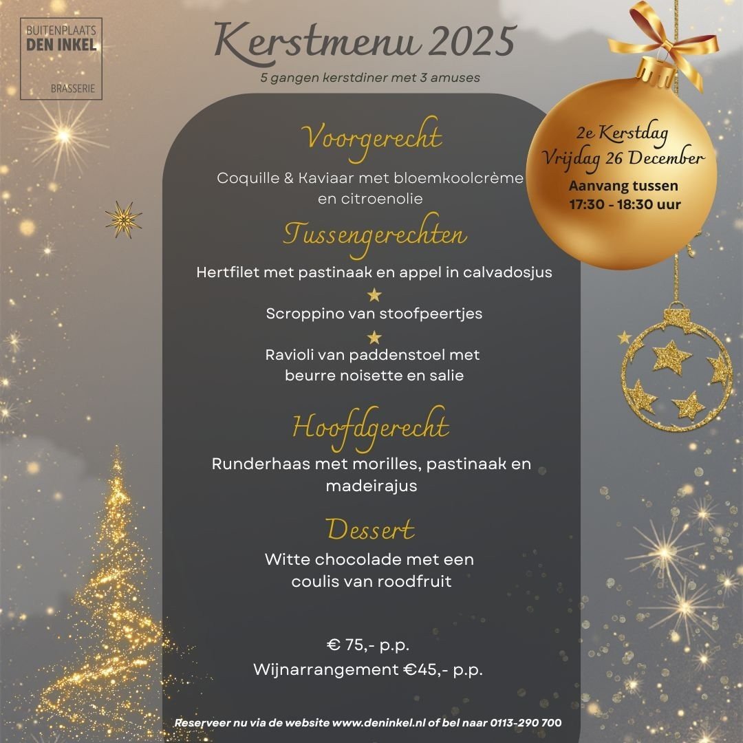 Kerst bij Brasserie Den Inkel, samen genieten van een magische avond